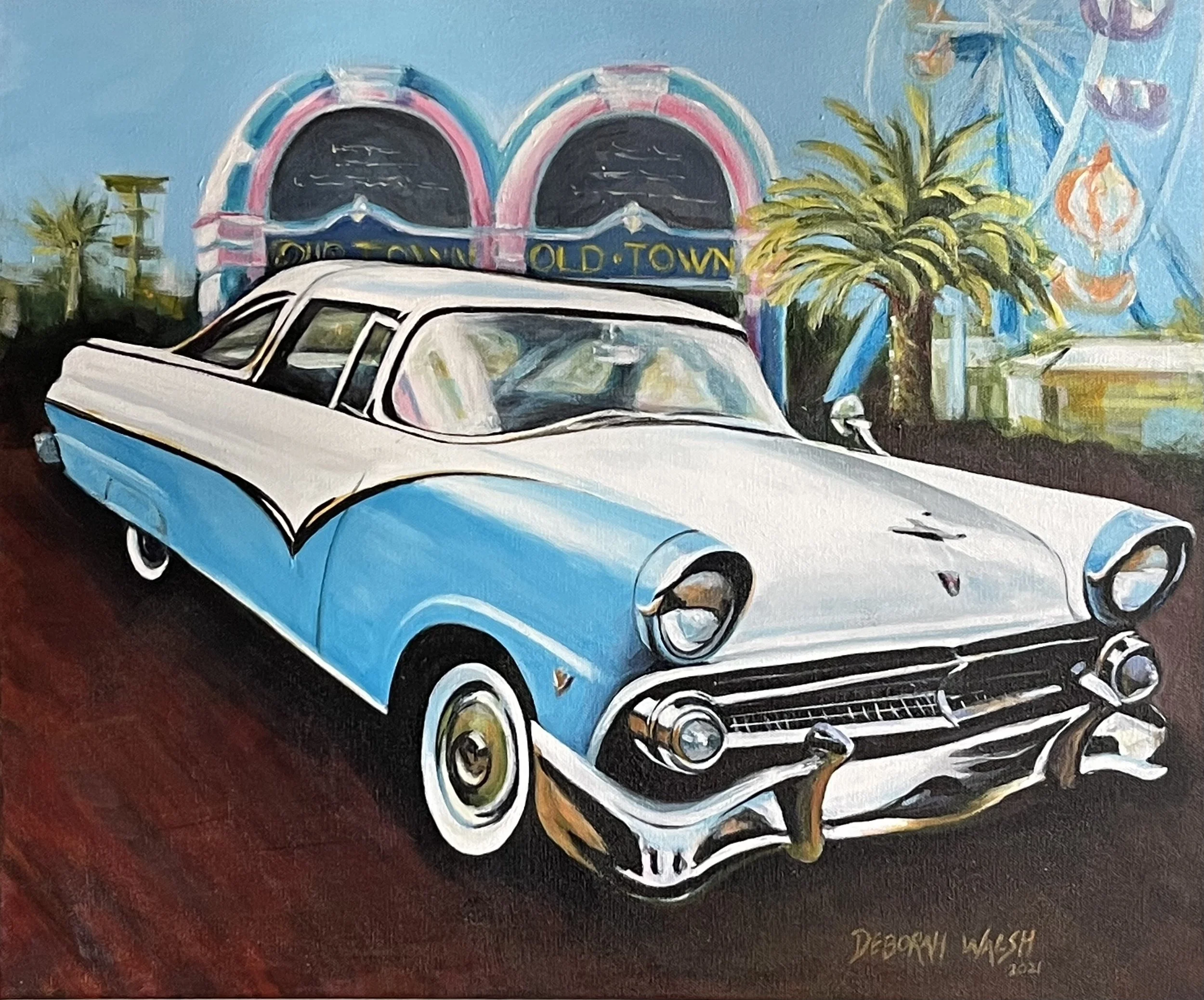 The owner of this car sold it a few years back and this painting was commissioned as a gift. He enjoyed showing off this beautiful Ford Fairlane Crown Victoria at the Kissimmee Old Town Florida Car shows. An original painting is a wonderful way to keep memories alive.